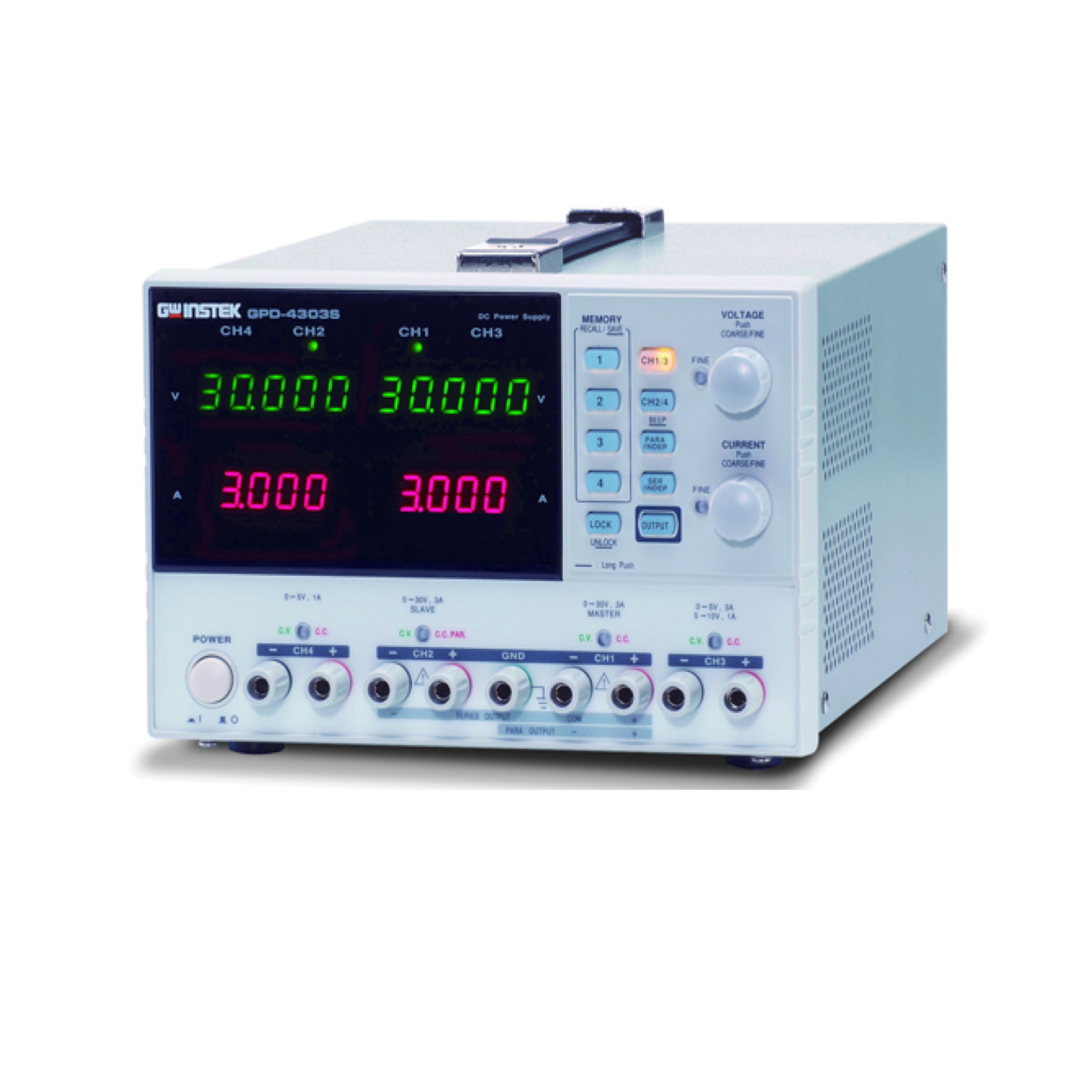 The GPD-X303S Series contains the superior technology and high quality which GW Instek had established through its long history of power supply design and manufacturing. The GPD-X303 Series offers digital panel control, large display, bright LED indicators, high output resolution, 4 sets of setup memory, USB remote control and smart cooling fan control. Additionally , the GPD-X303S Series provides easy operation , a wide selection of panel setting and operation.