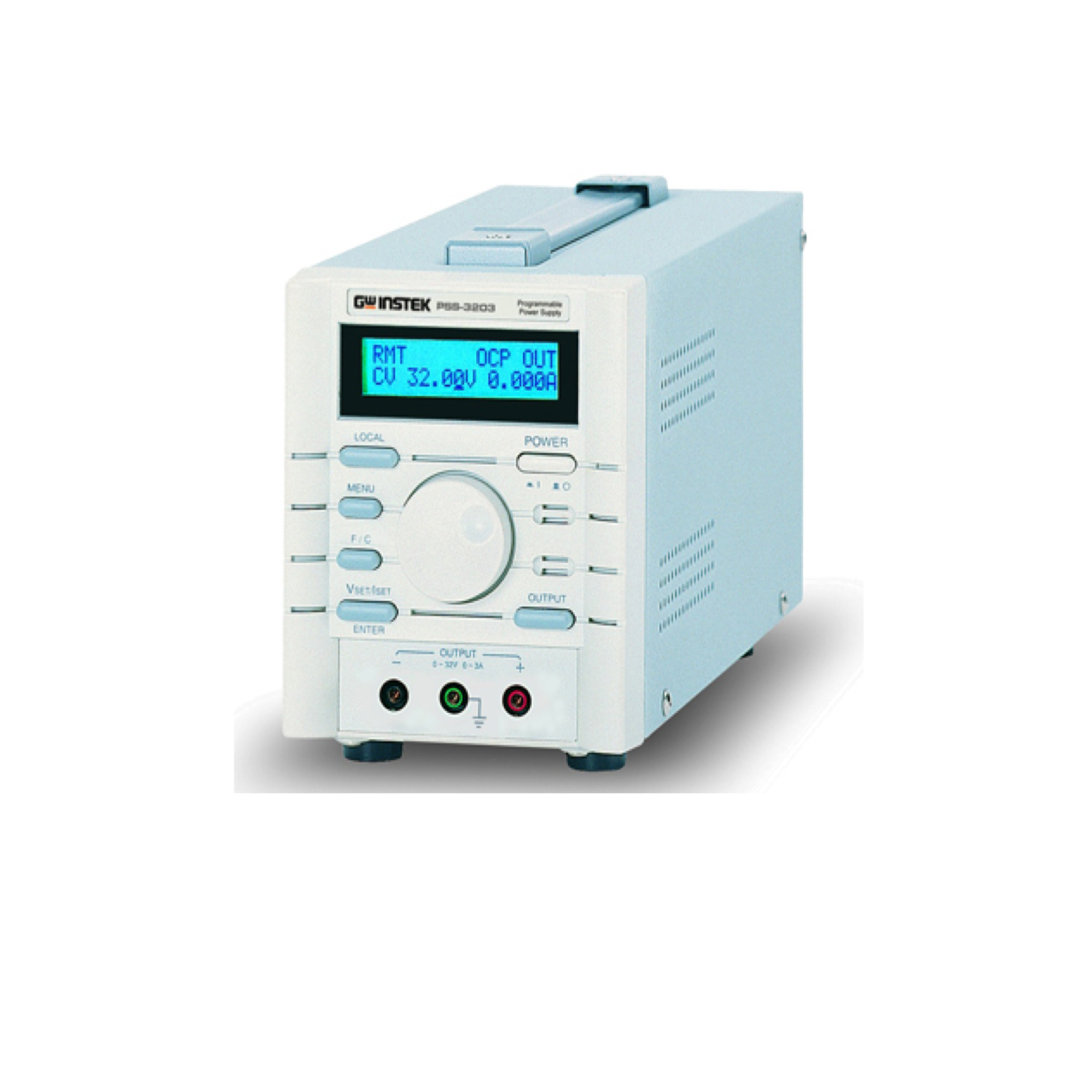 The PSS-Series is single output, 96W or 100W, programmable linear DC power supplies. OVP, OCP, and OTP protect the PSS series and their loads from unexpected conditions. The LCD panel simultaneously displays output and other parameters; the regulated cooling fan ensures low noise for comfortable operation. RS232C and GPIB interfaces, SCPI command sets, and LABVIEW drivers make remote control and ATE software development easier. (Note: only either RS-232C or GPIB can be installed) The compact PSS series is suitable for any high resolution bench-top or rack mount application.