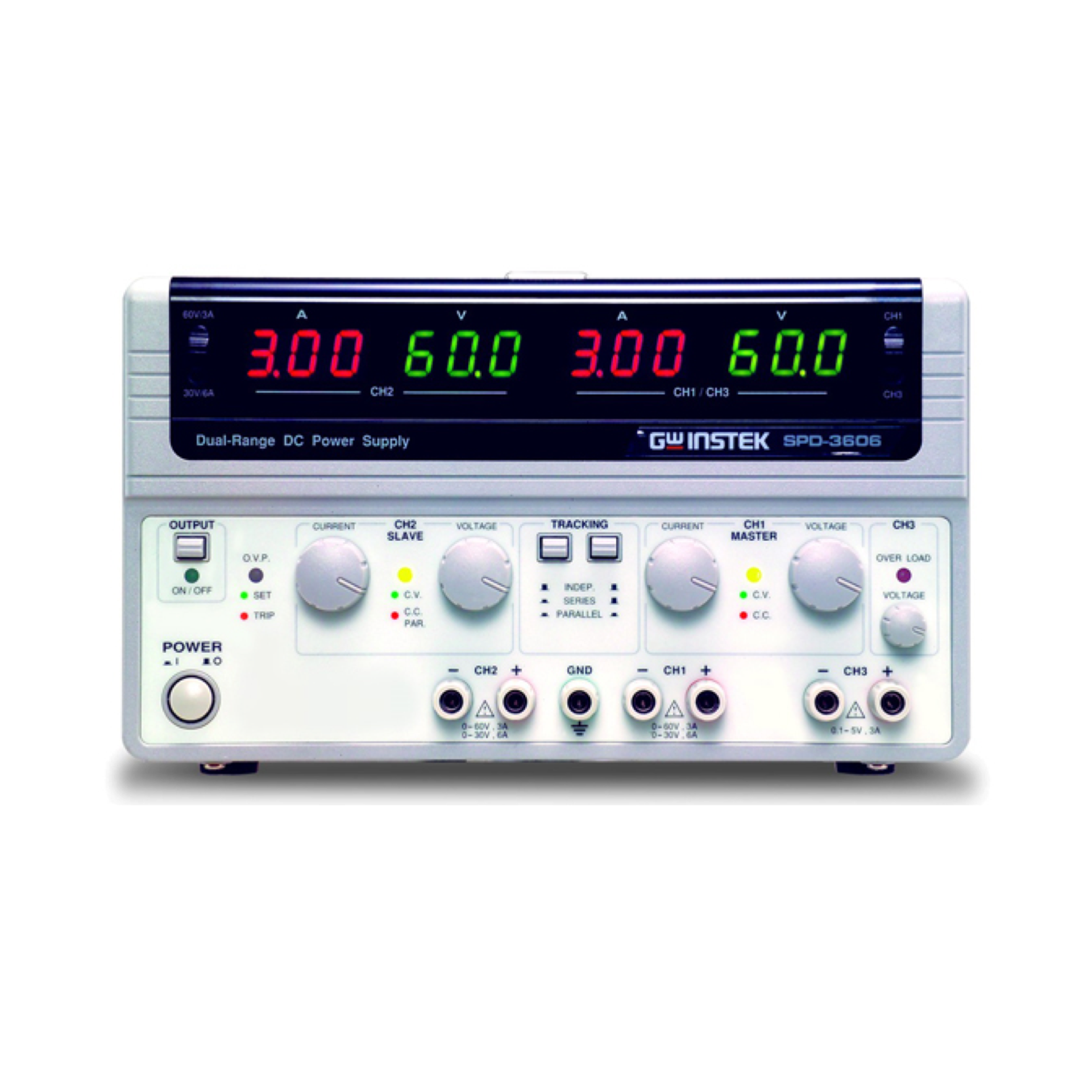 The SPD-3606 DC power supply provides 375W output capacity, three isolated outputs with dual-range for CH1 & CH2, highly efficient power conversion, low noise, high reliability, thorough protection,excellent value, and a compact size. The SPD-3606 creates a new benchmark to satisfy mainstream power supply demands. CH1 & CH2 offer dual-range output at either 30V/6A or 60V/3A per channel to accommodate a wide range of applications. The SPD-3606 supports serial and parallel tracking, allowing the CH1 and CH2 to be internally connected in series or parallel to provide flexible output (30V/12A, 60V/6A, or 120V/3A). High power density and high power conversion efficiency let the SPD-3606 consume less energy, making SPD-3606 a greener power supply. In addition, the high power density makes the SPD-3606 weigh less than half and occupy much less space compared to linear power supplies. To avoid damage caused by improper operation, it also has OVP and OTP. The dual range AC input accepts both 115V and 230V inputs. When the instrument is on, devices can be connected and voltage/current levels can be adjusted safely from the front panel by turning off the output via Output on/off key. The optional voltage/current protection knobs can be used to prevent accidental change of the output levels. These knobs are useful for automated testing at fixed output levels, such as in assembly lines or product inspections.